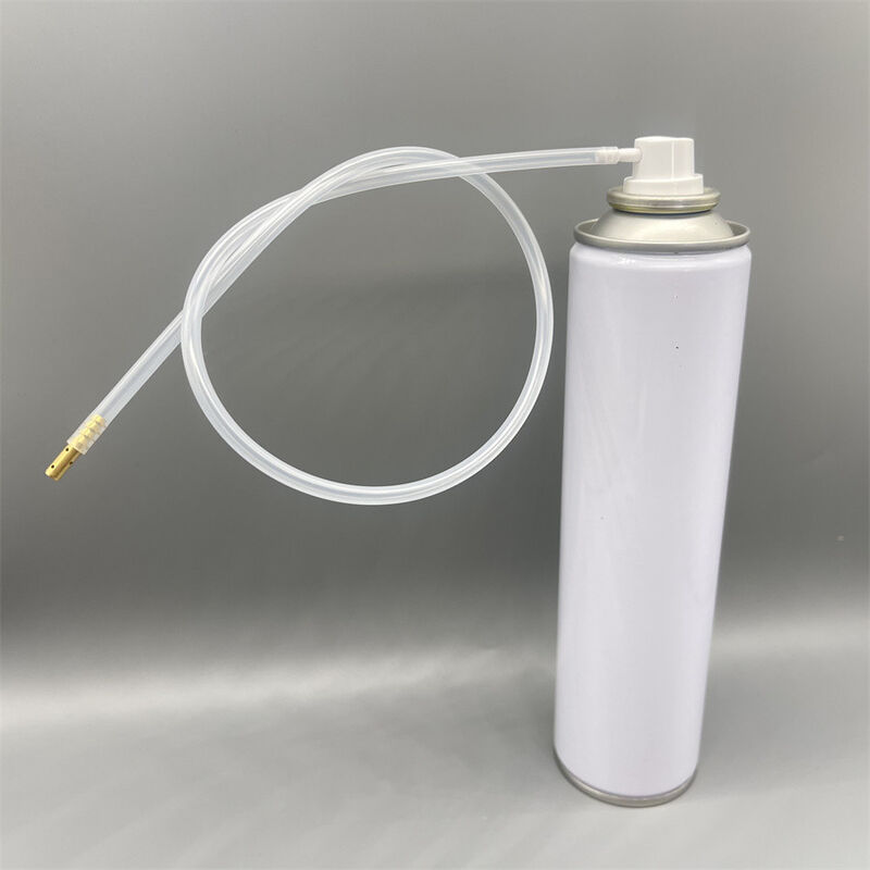 This specialized valve is designed for air conditioner cleaning sprays. It produces a thick, expanding foam rather than a liquid, which allows it to cling to vertical AC coils and fins. The valve includes a thin, rigid extension straw to direct the foam precisely into the tight spaces of an AC unit for thorough cleaning.